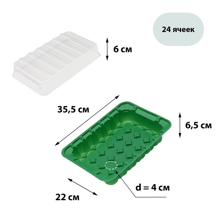Мини - парник для рассады, 25×17.5×4.5 см, 24 ячейки под таблетки для рассады d=3 см, пластик, Greengo