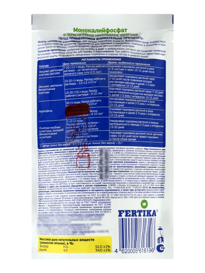 МОНОКАЛИЙФОСФАТ дой-пак 0,5 кг