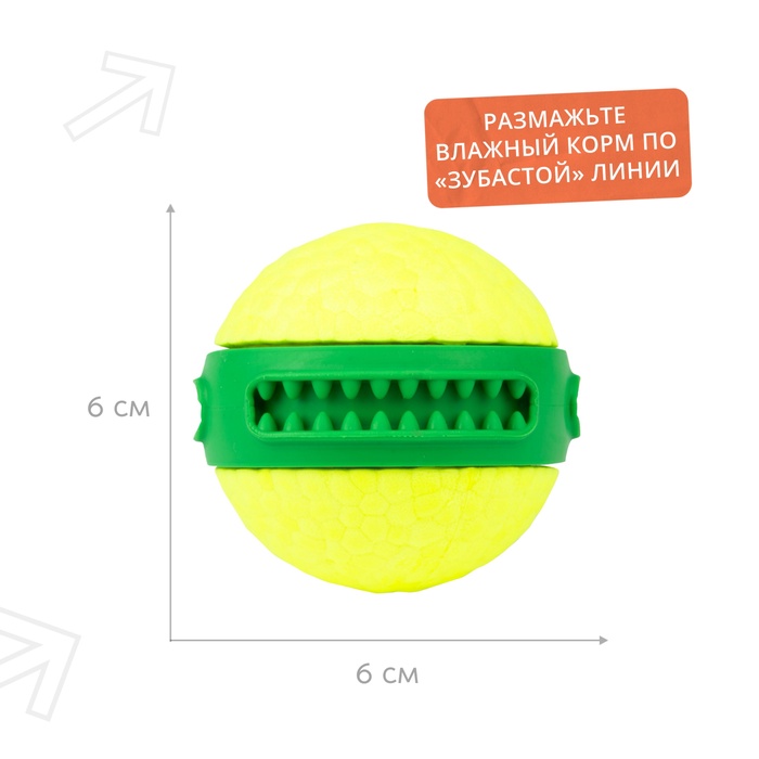 Мяч «Зубастик» — это компактный резиновый мяч с рельефной поверхностью и ярким исполнением. Его диаметр — 6 см — идеален для собак мелких и средних пород, а текстура и баланс делают его практичным выбором для игр на свежем воздухе и в помещении.