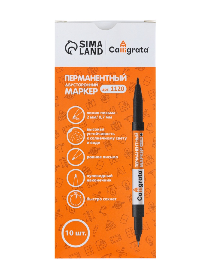 Набор 10 штук маркеров перманентных двухсторонних 0.7 мм/2.0 мм черных CALLIGRATA