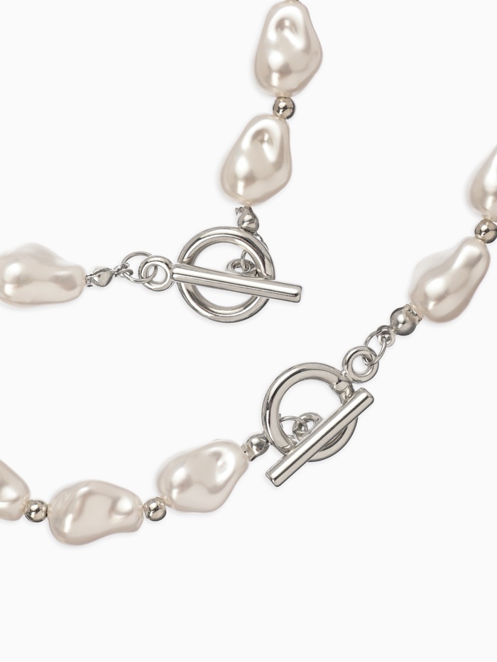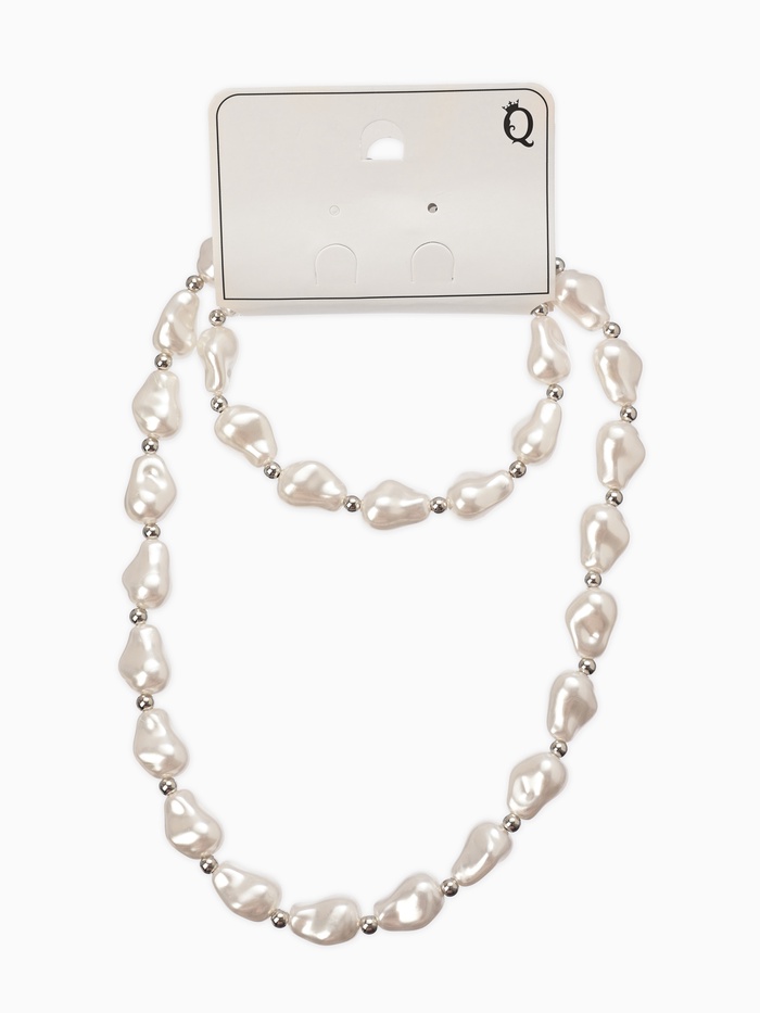 Набор 2 пред-та: бусы,браслет "Жемчуг барочный", капля, 40/18см, цвет белый в серебре