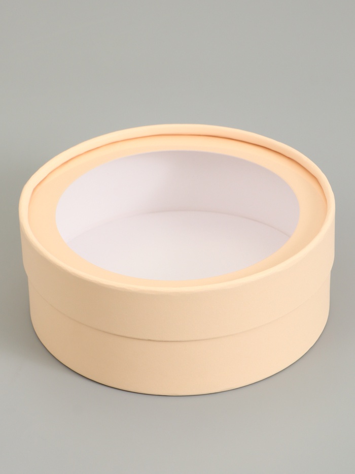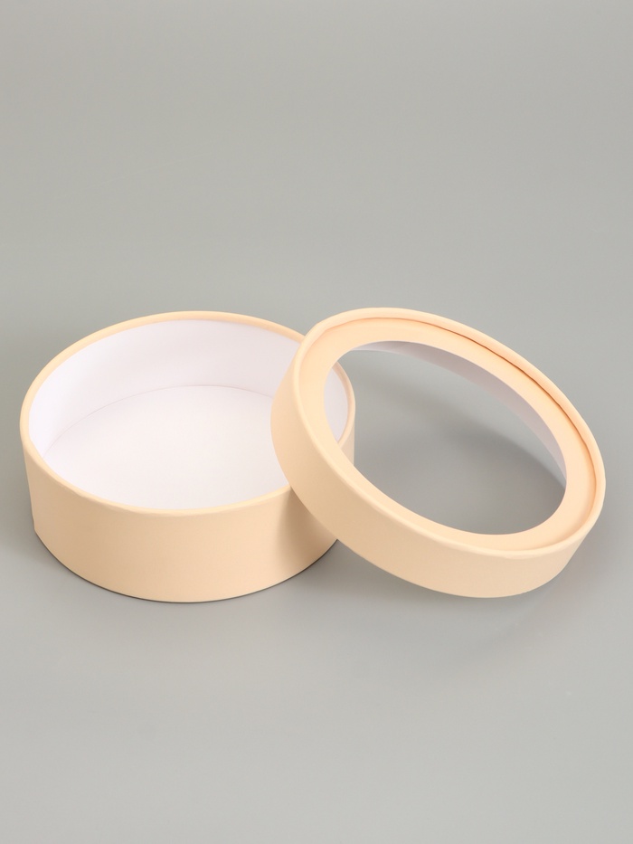 Набор 2 в 1 круглых подарочных коробок «Бежевый» с окном, 21 х 7 - 18 х 6 см