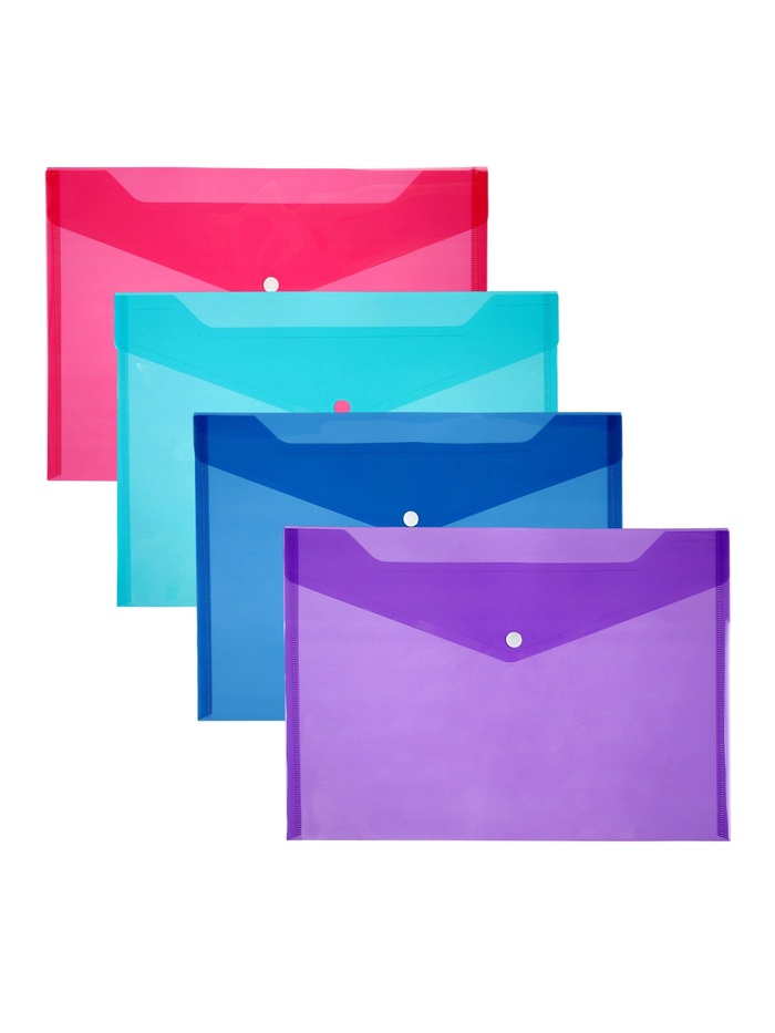 Набор 8 штук папки-конверты на кнопке, формат А4, 180мкр, 4 цвета