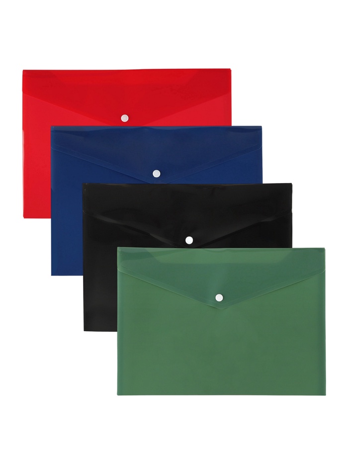 Набор 8 штук папки-конверты на кнопке, формат А4, 180мкр, 4 цвета