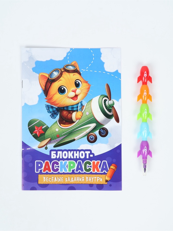 Набор: Блокнот-раскраска А5, 8 страниц и восковой карандаш "Кот"