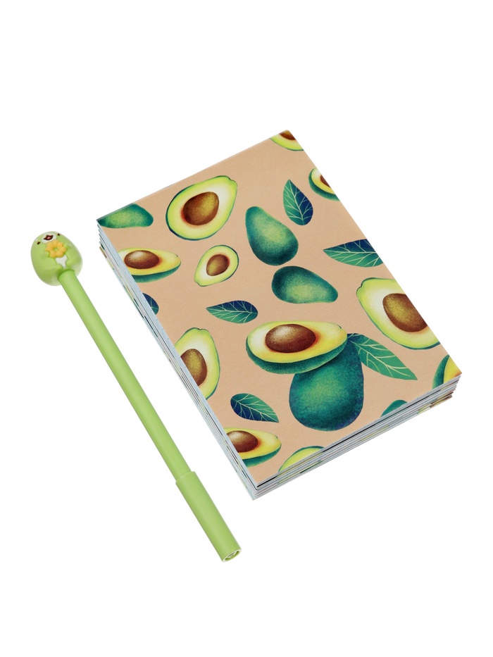Набор блокнотов 8 шт А6 24л кл на скобе Авокадо, мел карт, бл офс, 4В + ручка МИКС
