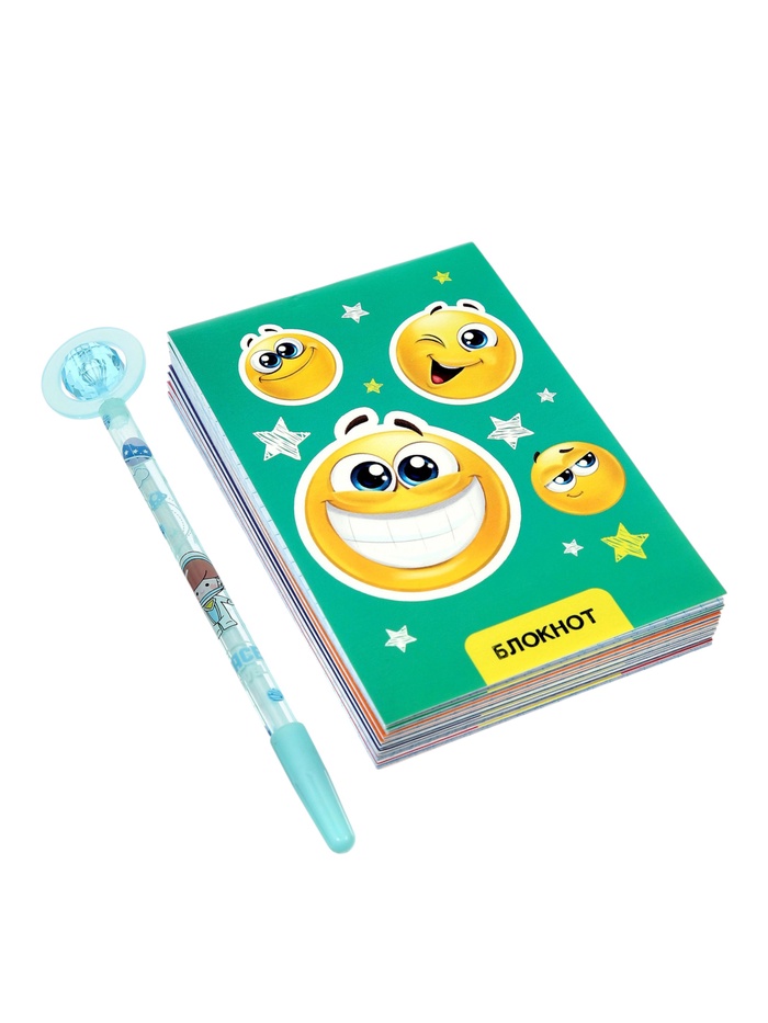 Набор блокнотов 8 шт А6 24л кл на скобе Смайлики, мел карт, бл офс, 4В + ручка МИКС