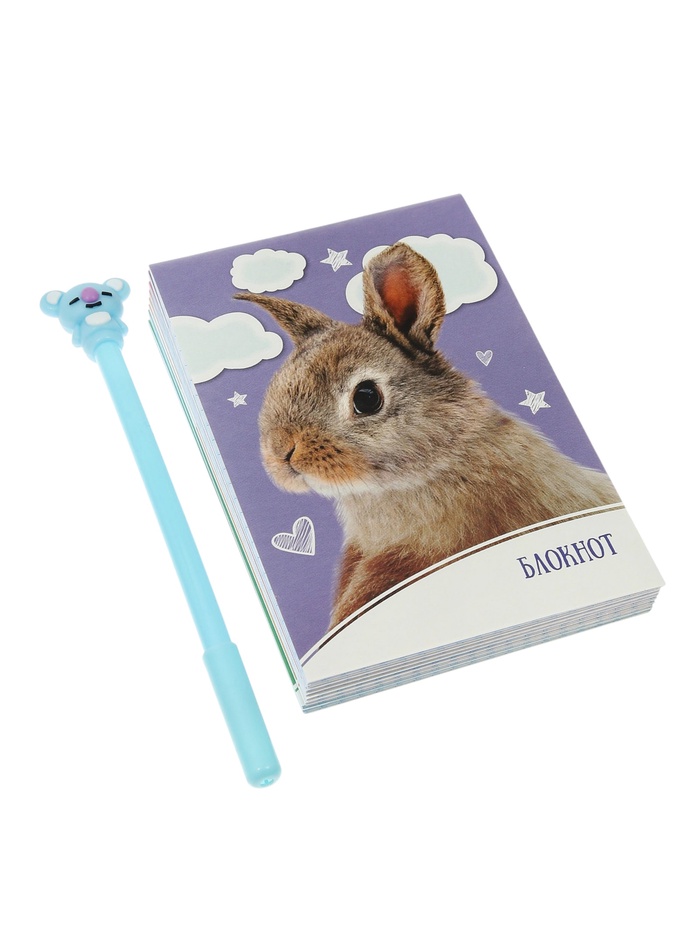 Набор блокнотов 8 шт А6 24л кл на скобе Домашние животные, мел карт, офс, 4В + ручка МИКС
