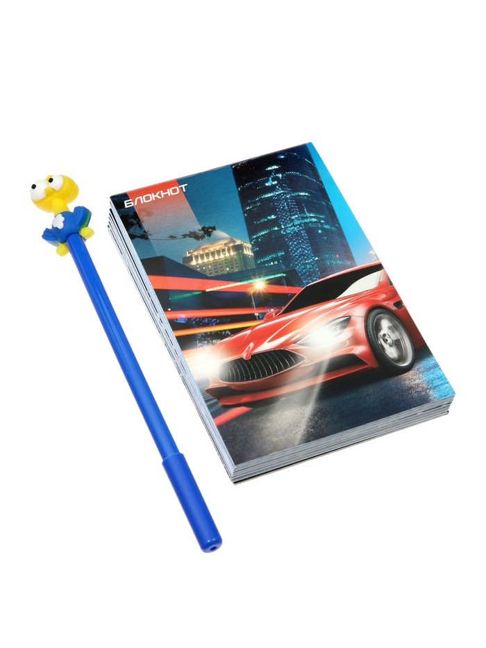 Набор блокнотов 8 шт А6 24л кл на скобе Тачки, мел карт, бл офс, 4В + ручка МИКС