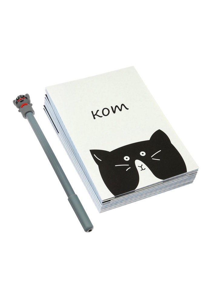 Набор блокнотов 8 шт А6 32л кл на скобе КотЭ, мел карт, бл офс, 4В + ручка МИКС
