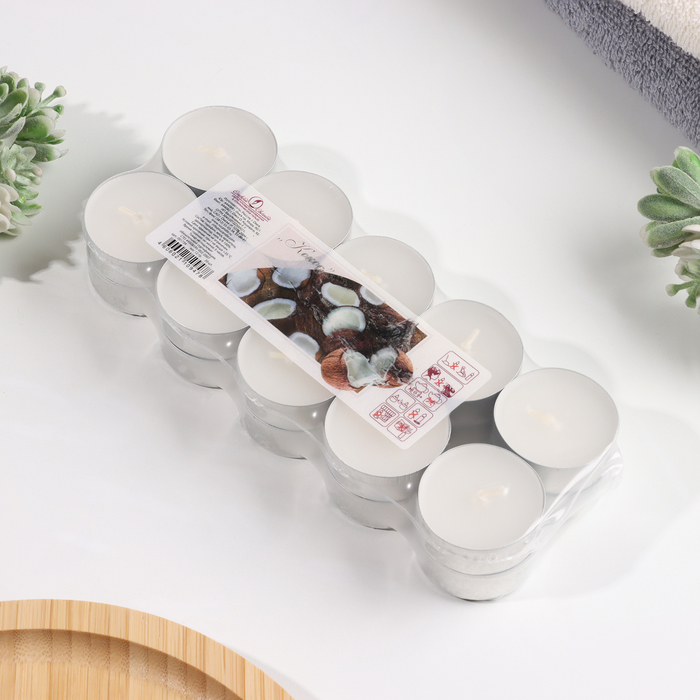 Набор чайных свечей ароматических в термоусадке "Кокос", 3,8х1,6 см, 3,5 ч, 12 г, 20 штук