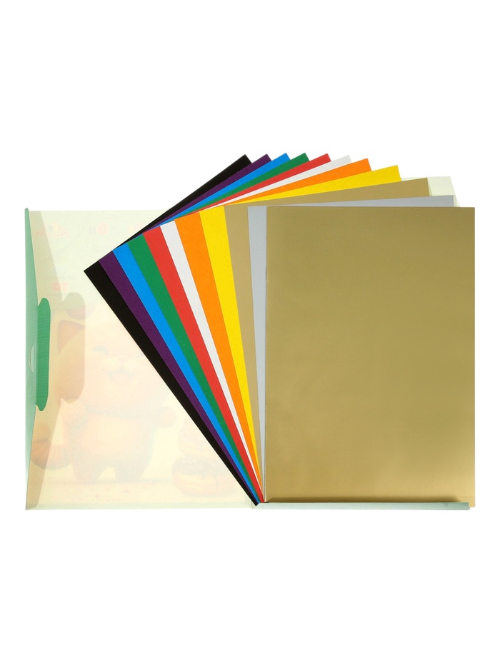 Набор цветной бумаги и картона А4 «Рыжий и довольный», 10 листов, 10 цветов, 50 г/м² + 10 листов цветного картона 200 г/м², в папке