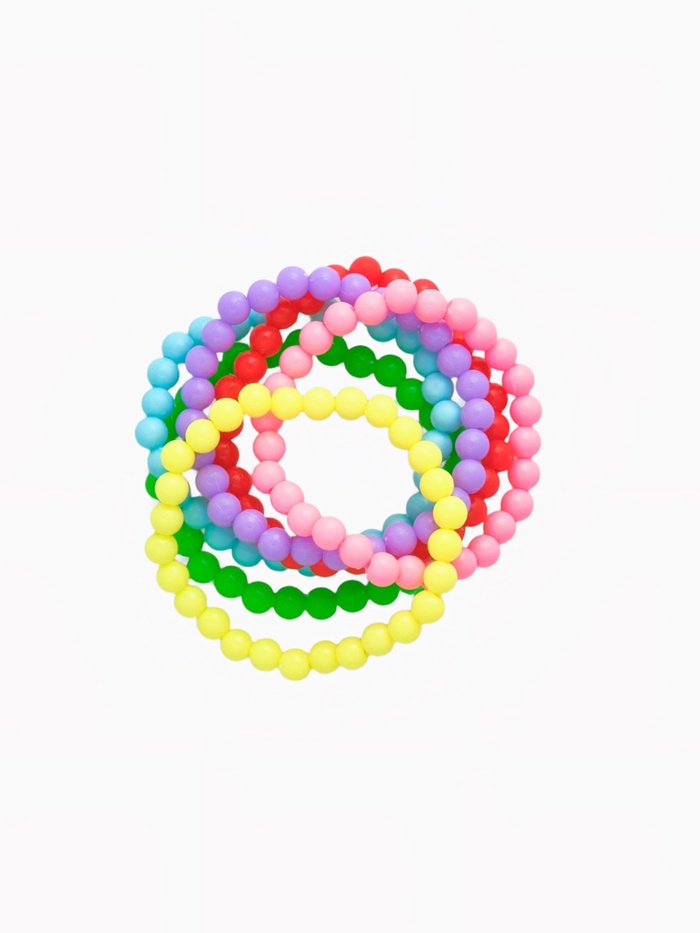 - Шесть браслетов с одной нитью бусин в разноцветной гамме.