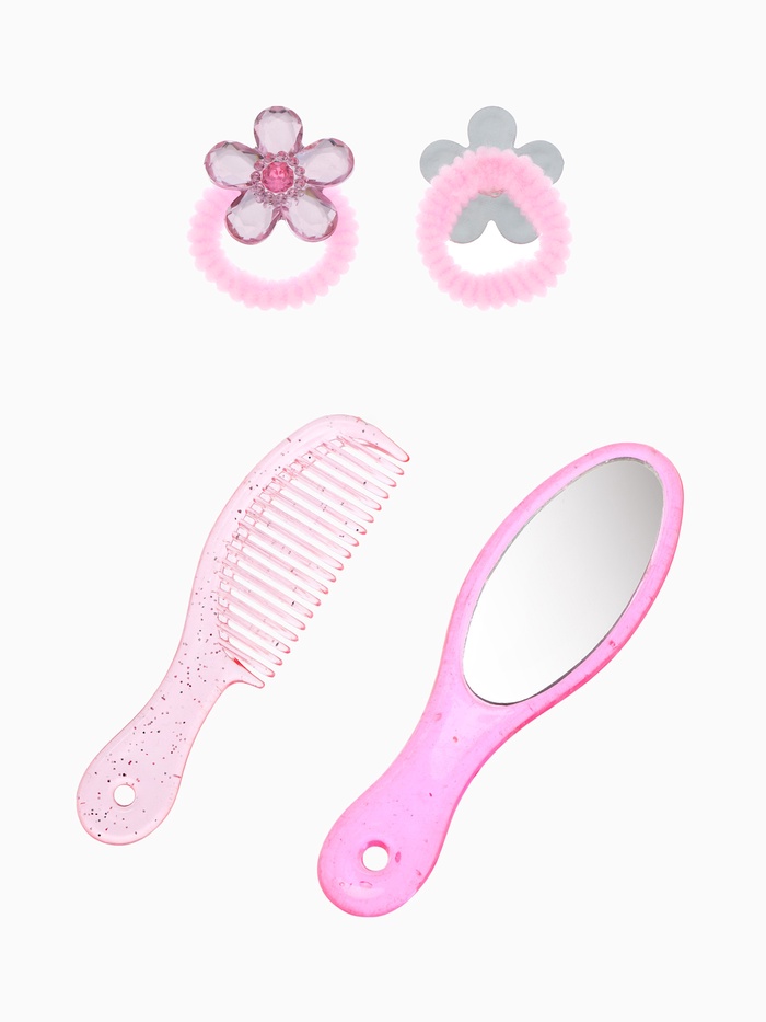 Разноцветный набор украшений для девочек, вдохновлённый тематикой парикмахерского искусства, объединяет шесть ярких и стильных аксессуаров — бусы, браслет и резинки. Каждый элемент выполнен из пластика и текстиля без металлической фурнитуры, что гарантирует лёгкость и безопасность при использовании.