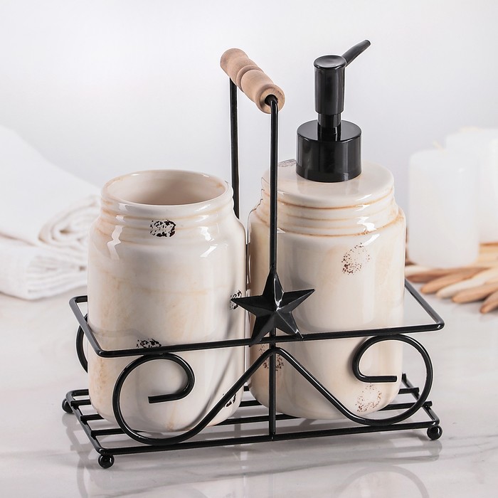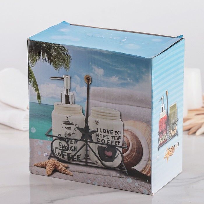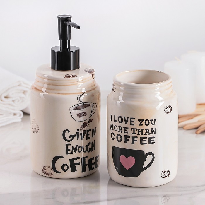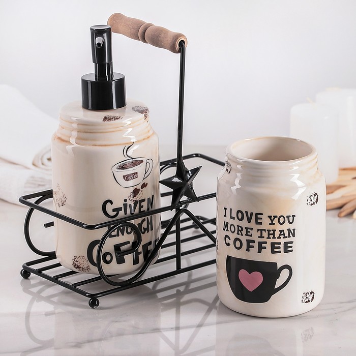 Набор для кухни «Кофе», 2 предмета: дозатор для моющего средства 500 мл, стаканчик 500 мл, на подставке
