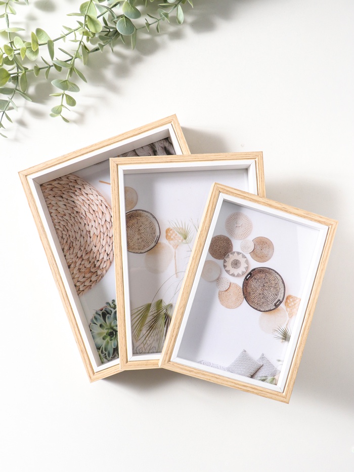 Этот набор из трёх фоторамок — готовое решение для оформления любимых снимков в едином стиле. Тёплый бежевый цвет и натуральная текстура дерева создают уютную атмосферу в интерьере. Каждую рамку можно поставить на стол или комод, а можно повесить на стену — вы выбираете, как лучше показать ваши воспоминания.