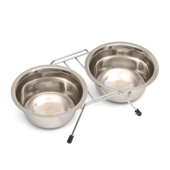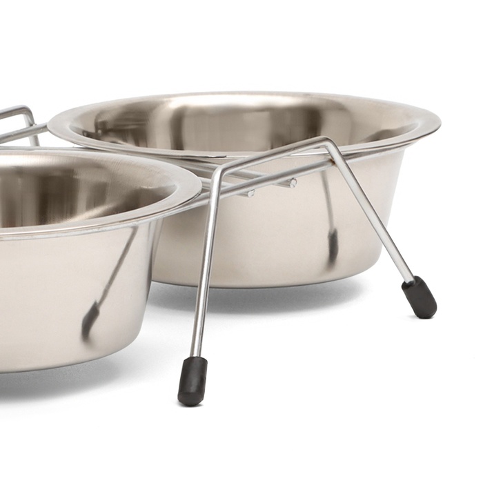 Набор из двух мисок изготовленных из качественной нержавеющей стали, которые предназначены для кормления домашних животных.