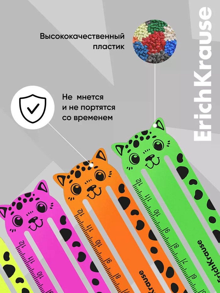Набор из 4 закладок ErichKrause Matt Neon, фигурные, пластик, МИКС