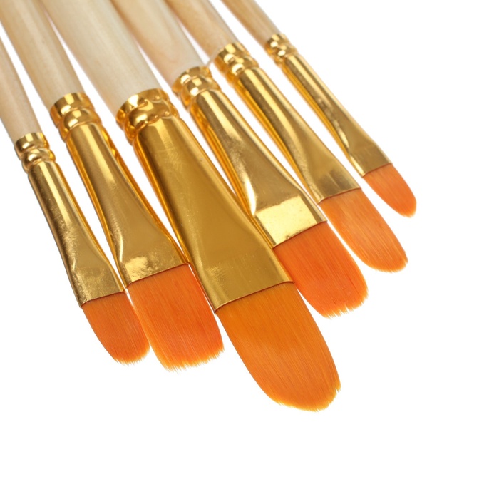 Набор кистей для рисования, синтетика, 6 штук: №2, 4, 6, 8, 10, 12 плоские, закругленные, деревянная ручка, международный размер