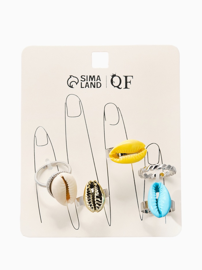 Набор колец 5 шт "Новый стиль" ракушки, размер МИКС, цветные в серебре