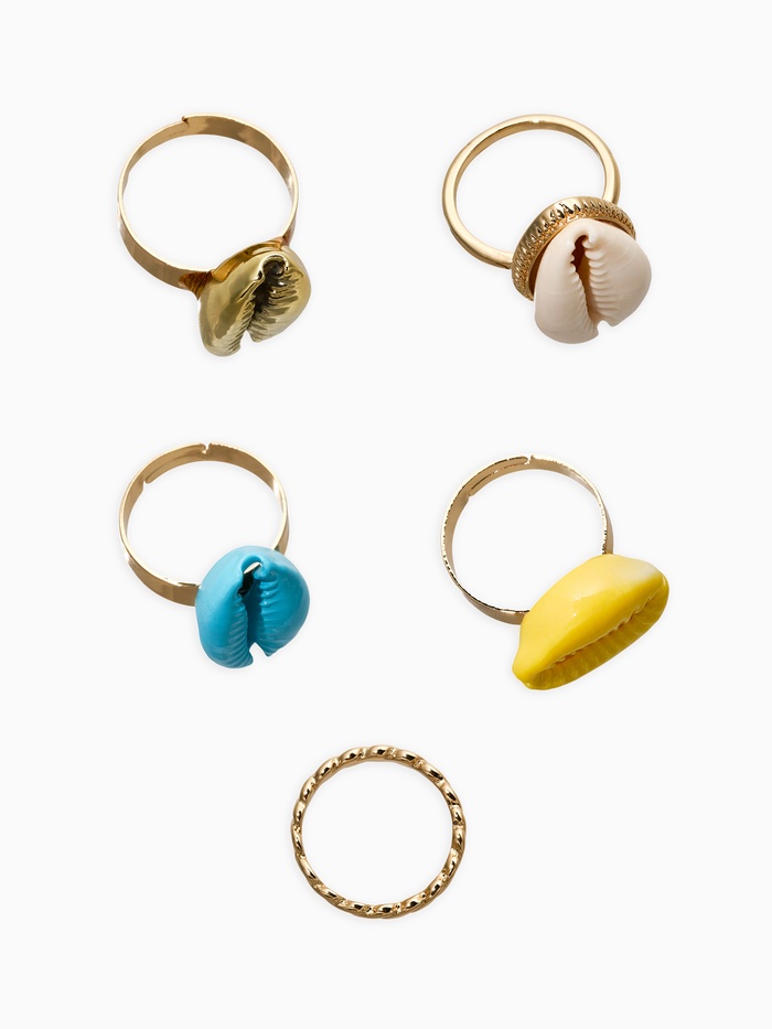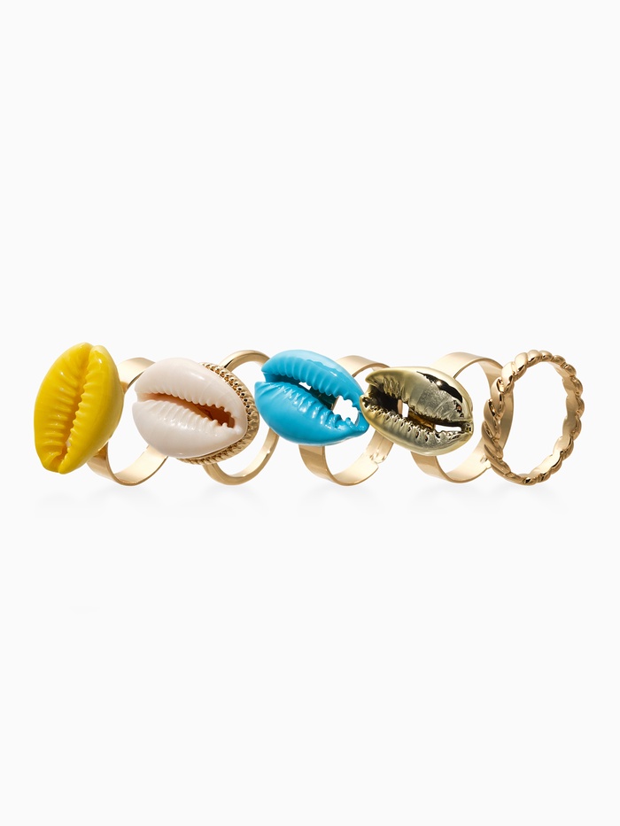 Набор колец 5 шт "Новый стиль" ракушки, размер МИКС, цветные в золоте