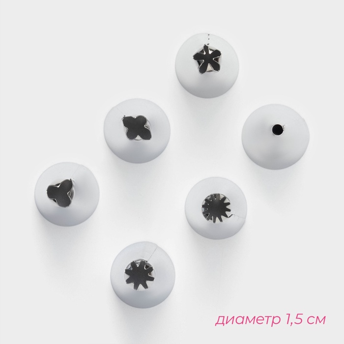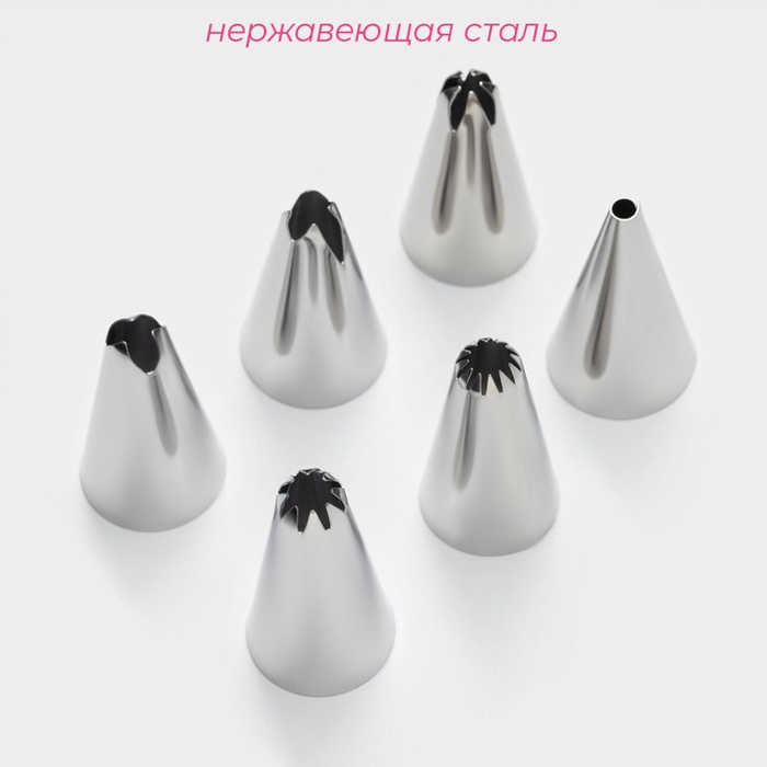 - В наборе: кондитерский мешок, адаптер, 6 насадок.
