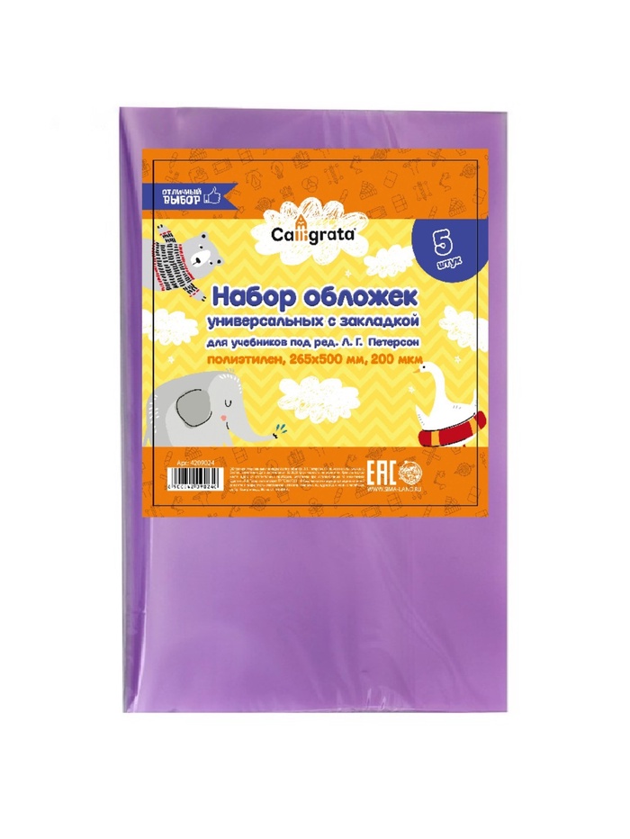 Набор обложек ПЭ 5 штук, 265×500 мм, 200 мкм, для учебника Петерсон, универсальная, с закладкой, МИКС