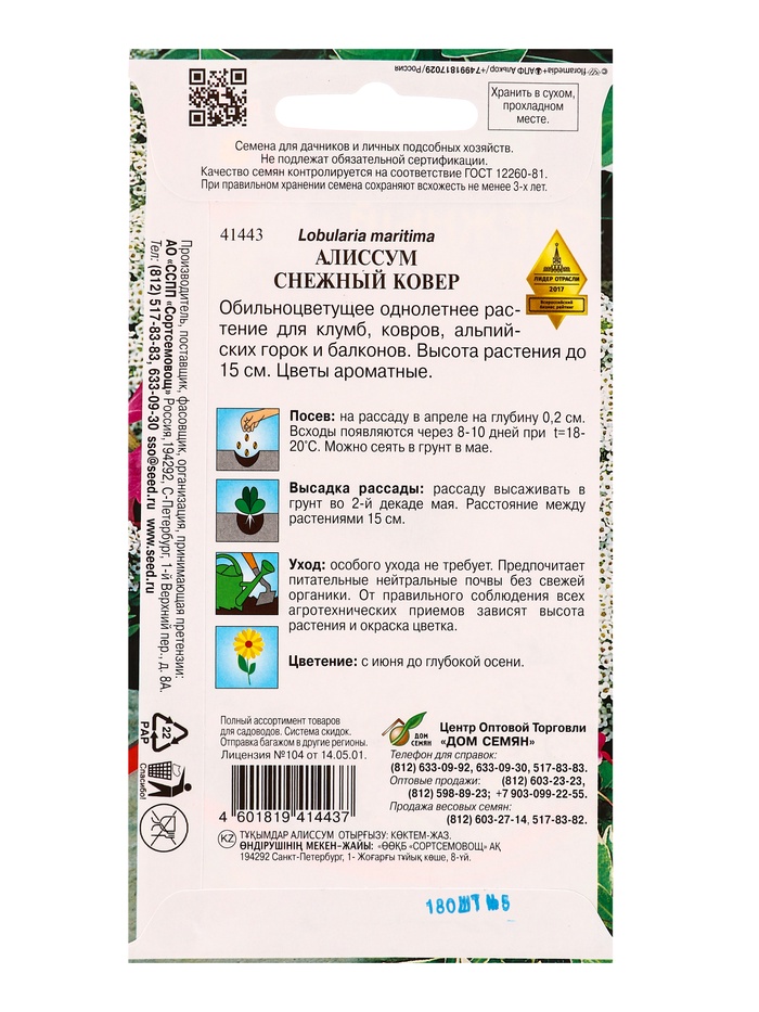Набор семян Алиссум «Снежный ковер», 180 семян