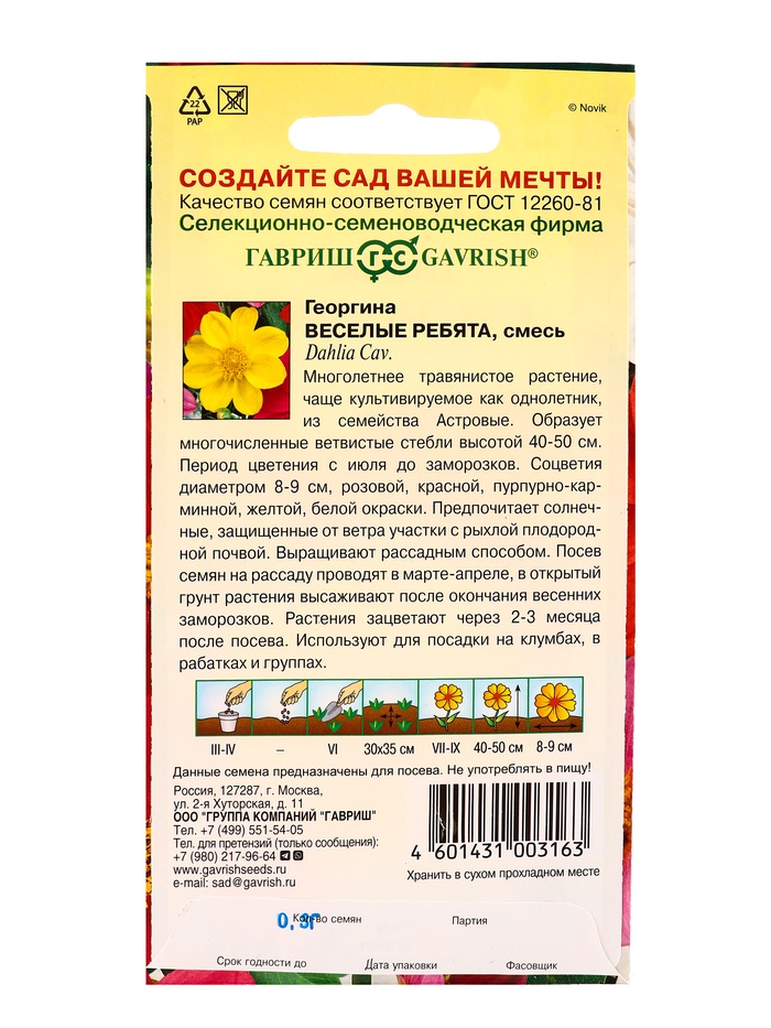 Набор семян Георгина воротничковая «Тип Топ», 0.3 г