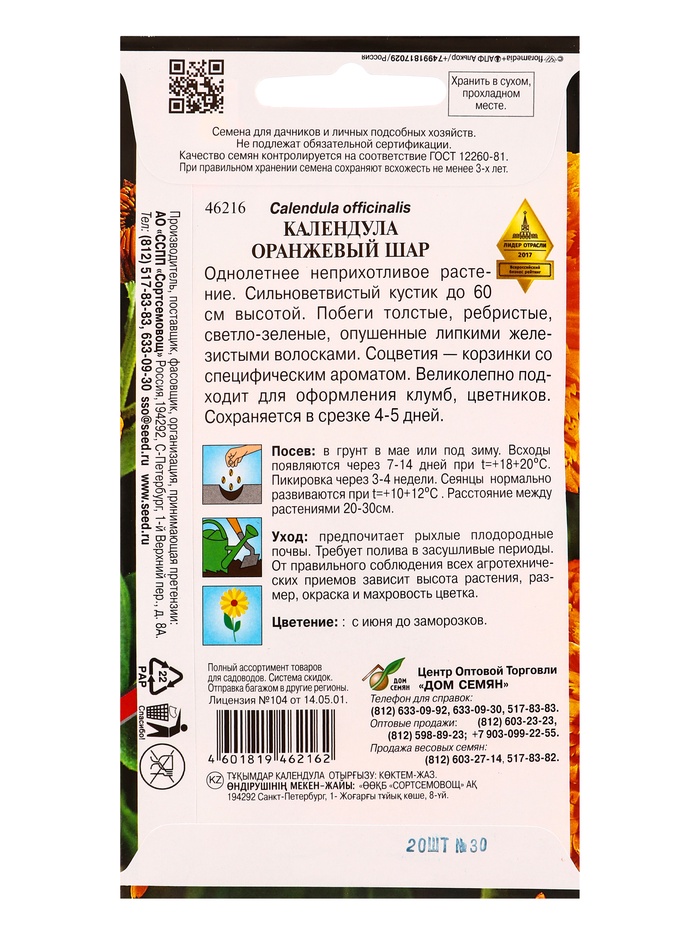 Набор семян Календула «Оранжевый Шар», 20 семян