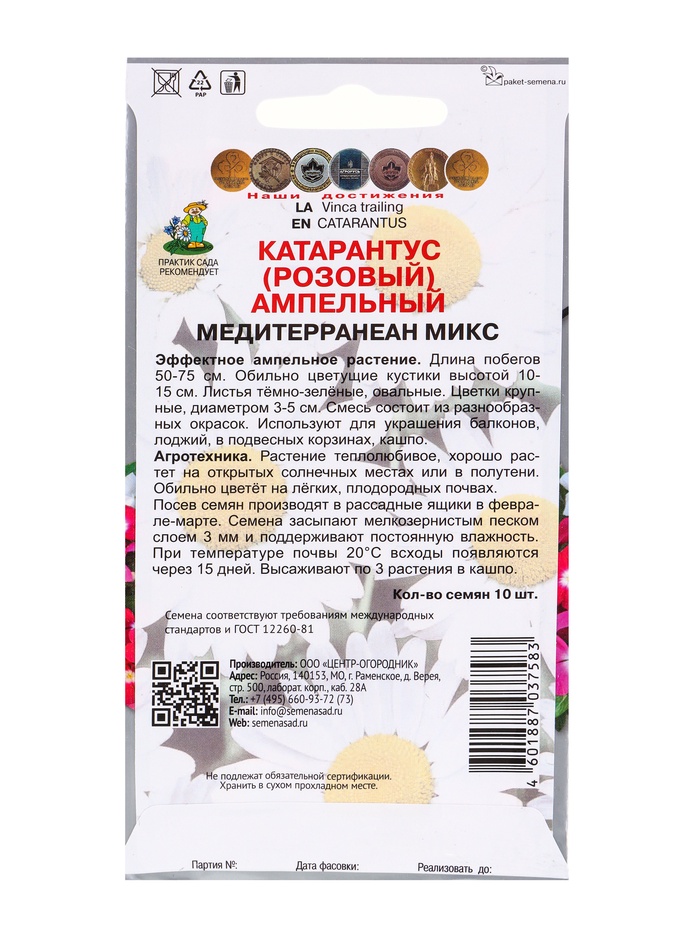 Набор семян Катарантус ампельный "Медитерранеан Микс", 3 шт.