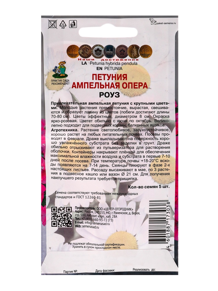 Набор семян Петуния ампельная "Опера Роуз", 2 шт.