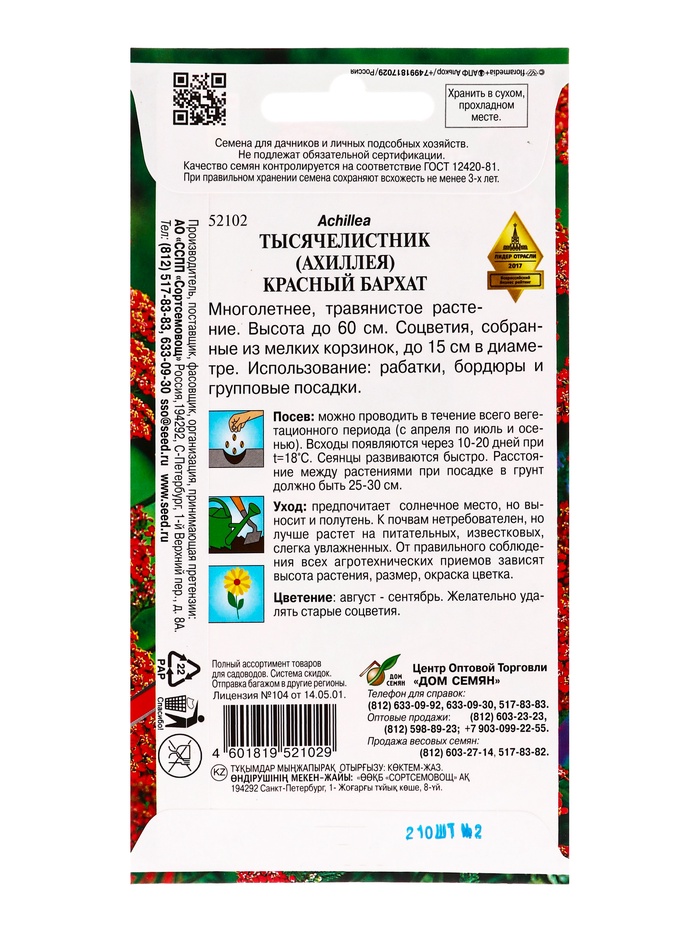 Набор семян Тысячелистник "Ахиллея", 5 шт.