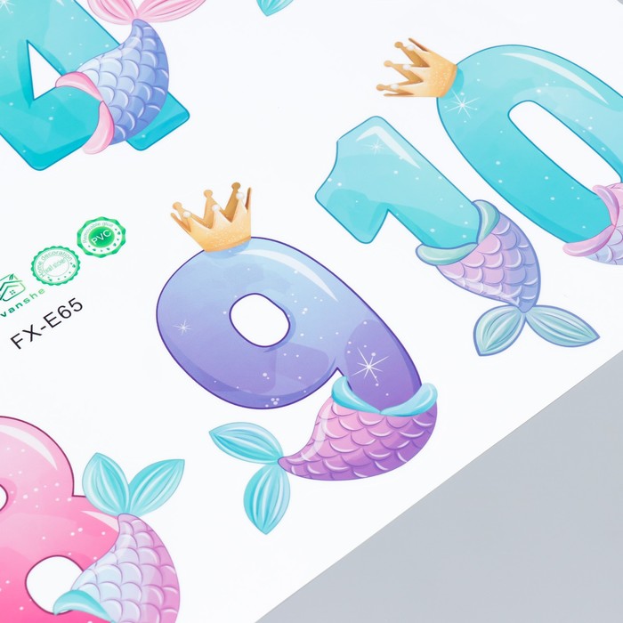 Наклейка пластик интерьерная цветная "Цифры с хвостом русалки" 35х60 см