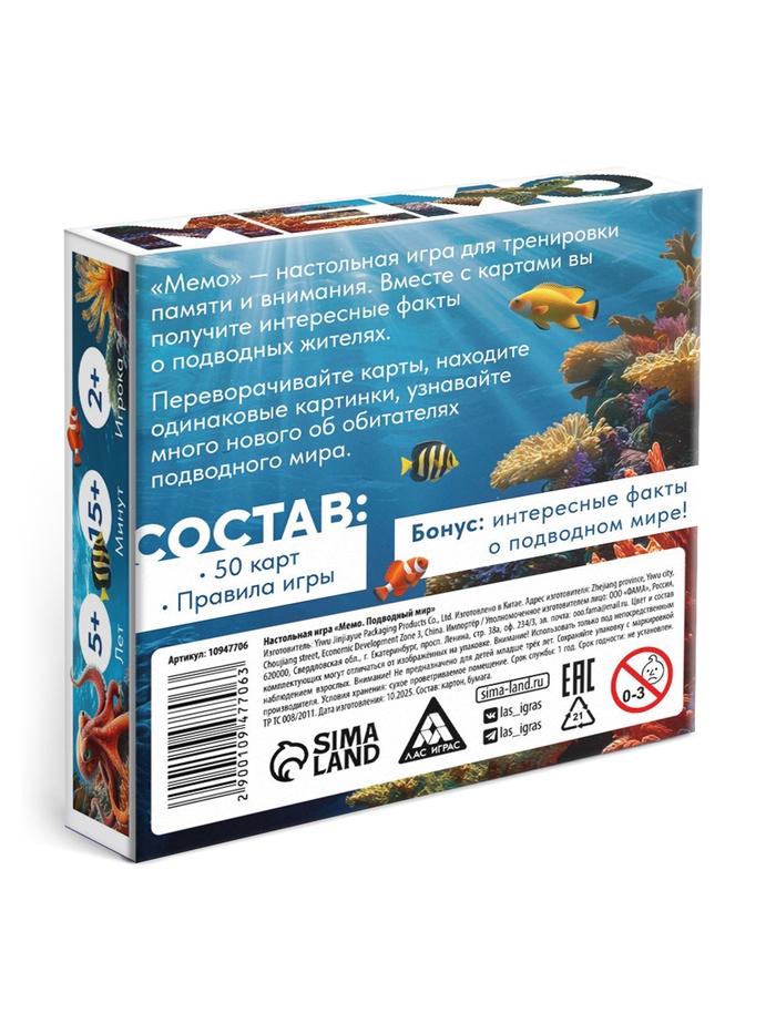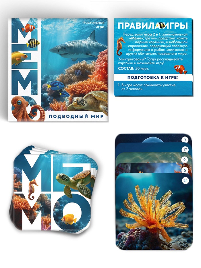 Настольная игра "Мемо. Подводный мир", 50 карт, 5+