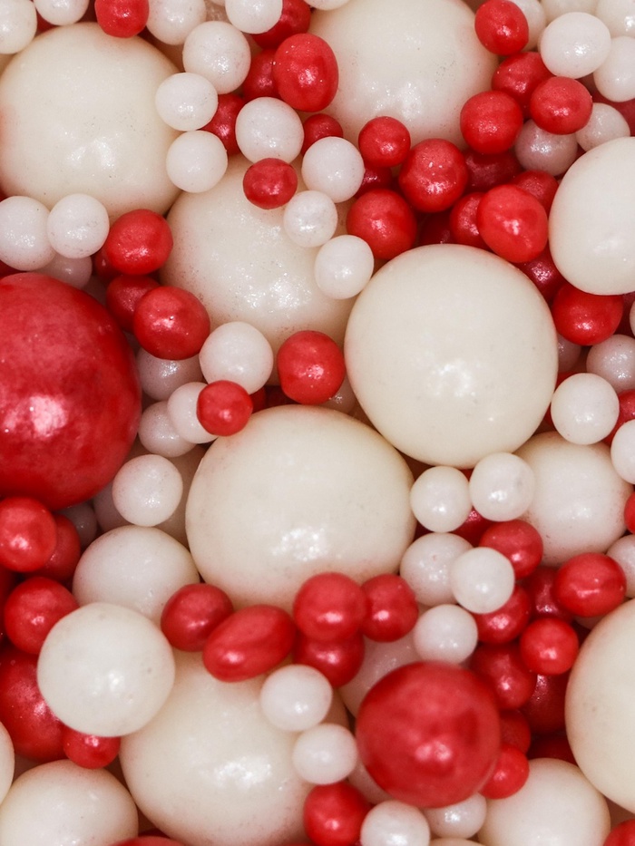 Новогодняя посыпка кондитерская с мягким центром "Жемчуг": красный, серебро, 20 г