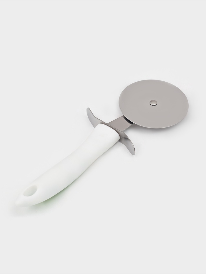 Нож для пиццы — универсальный кухонный инструмент, который не только легко разрезает готовую выпечку, но и помогает поделить на слайсы липкое тесто. Нож имеет эргономичную форму ручки и острое круглое лезвие. Колесо, прикреплённое к рукояти, продавливает продукт, а не разрезает его в отличие от классического ножа. Благодаря такому способу тесто разрезается, а начинка остается на месте.