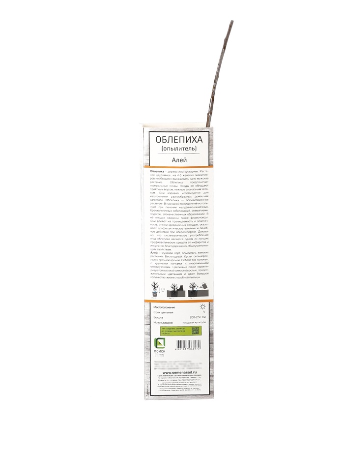 Саженец облепихи «Алей» — это сортовой опылитель, который станет надежным партнером для ваших плодоносящих растений. Его миссия — не плодоносить самому, а обеспечивать богатый урожай ягод на соседних женских кустах.
