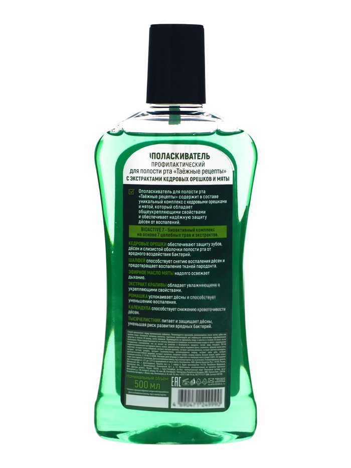 Ополаскиватель для рта Таёжные рецепты с экстрактом кедровых орешков и мятой, 500 мл