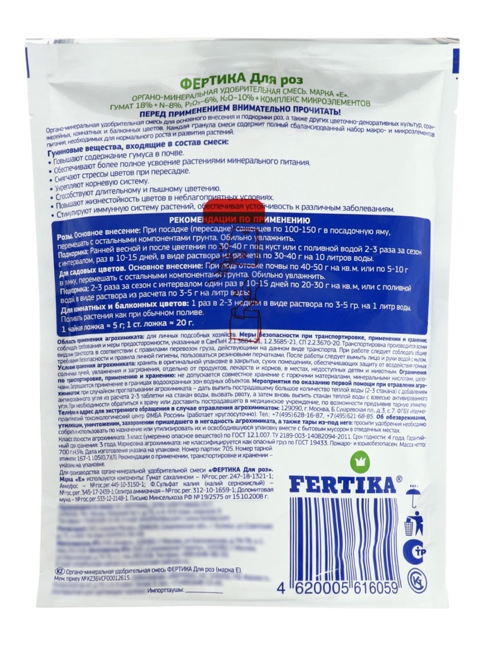 Органо-минеральная удобрительная смесь. Для роз (NPK 8:6:10 + микроэлементы) Дой-Пак 0,7 кг 1097737
