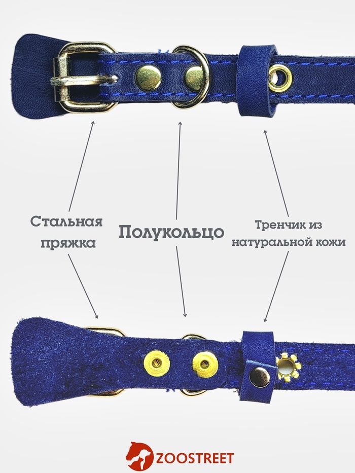 Ошейник, в котором сдержанная эстетика встречается с надёжной конструкцией — для уверенных прогулок без компромиссов. Кожаный ошейник с подпряжником выполнен в глубоком синем цвете. Ширина 3,5 см и регулируемый обхват шеи 26–31 см делают его подходящим для мелких.