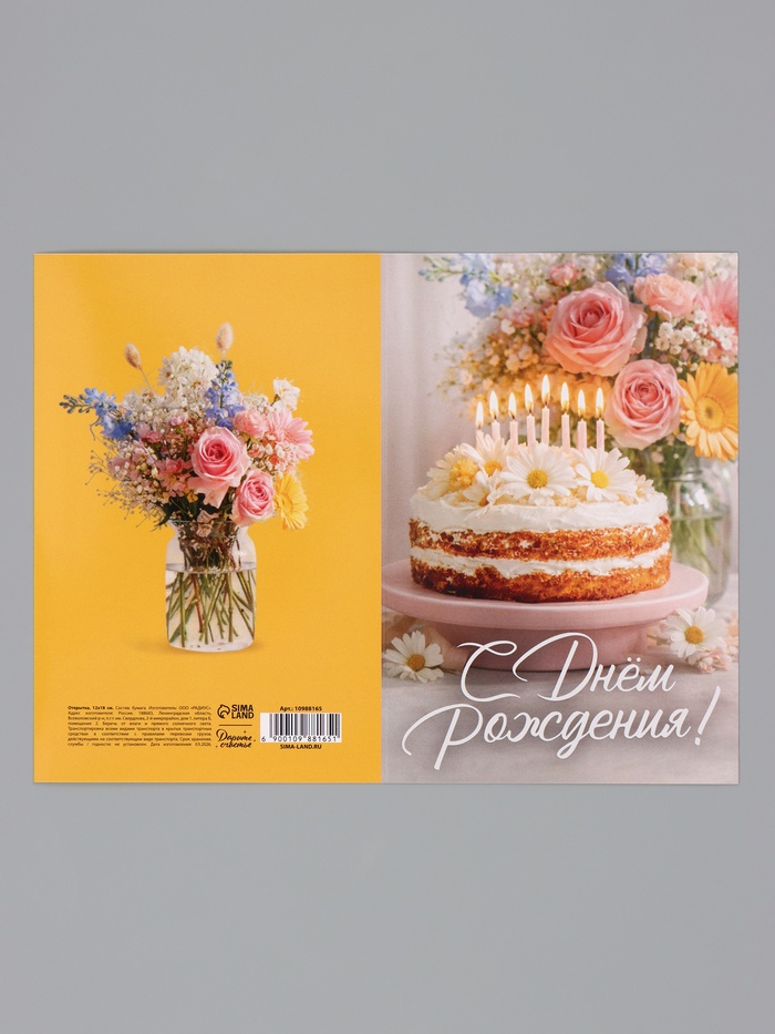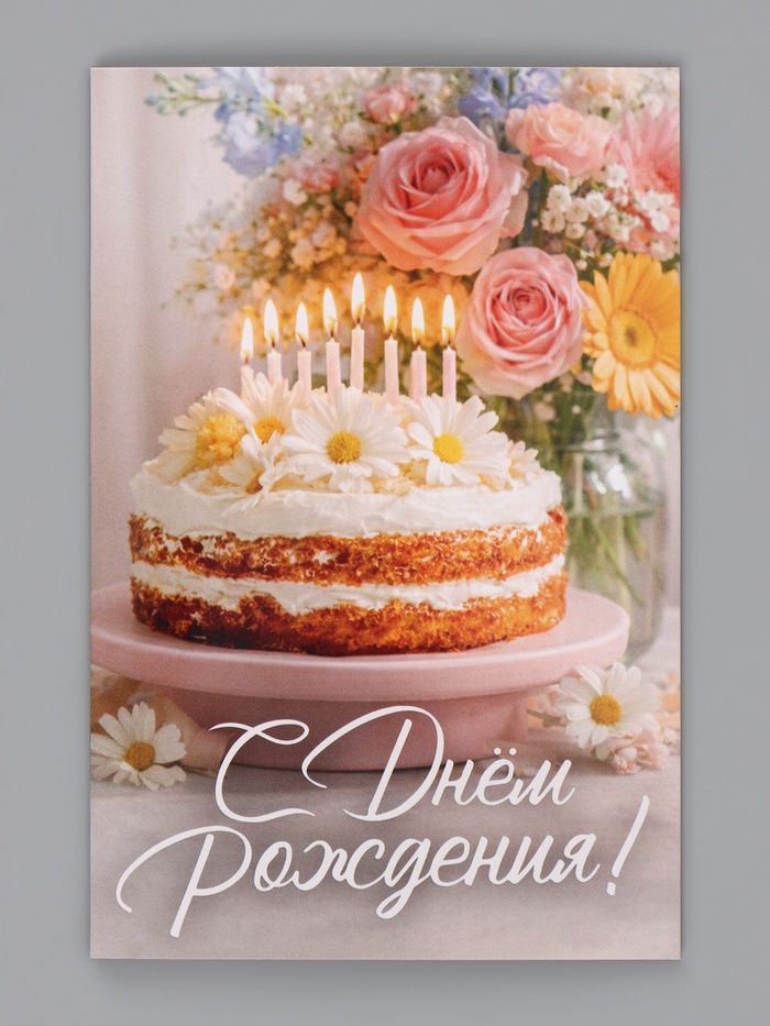 Открытка «С Днём Рождения», торт со свечами, 12×18 см
