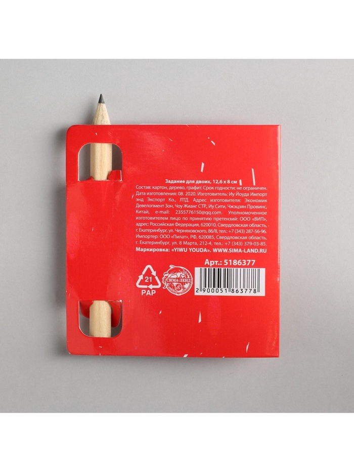 Задание для двоих «Очень люблю» , 12.6 х 8 см