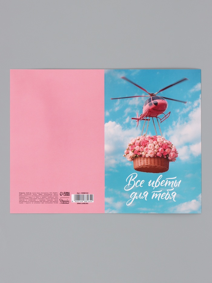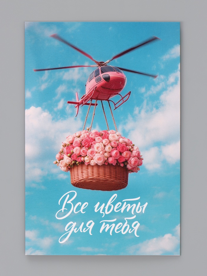 Открытка «Все цветы для тебя», вертолёт, 12×18 см
