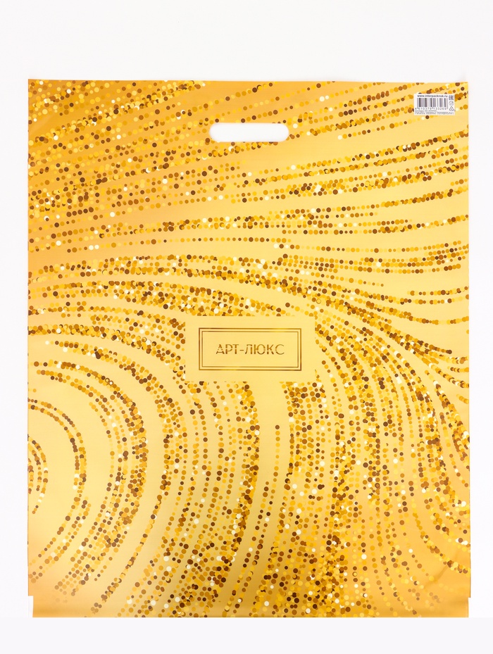 Презентационная упаковка для особых случаев Пакет «Арт-люкс» с золотистым орнаментом подходит для торжественных подарков. Крупный формат и повышенная плотность полиэтилена создают эффект статусной упаковки.
