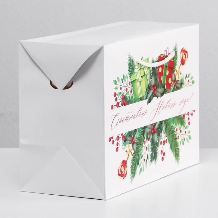 Пакет-коробка «Счастливого Нового года», 28 х 20 х 13 см