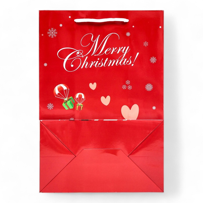 Пакет ламинированный подарочный с окном «Дед мороз» 24×35×14 см, зеленый