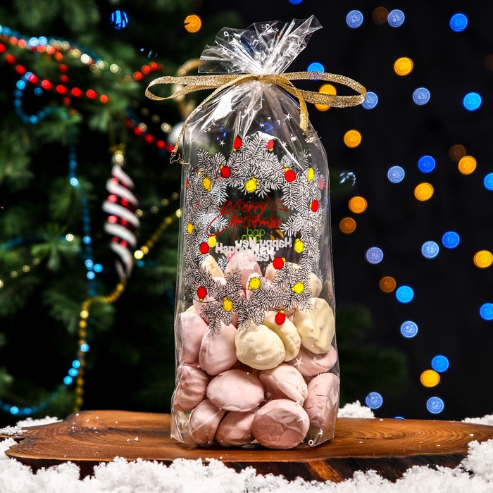 - Эстетичный внешний вид: Прозрачный материал с декоративным рисунком «Венок» придаст любому подарку или сладостям праздничный вид, создавая настроение волшебства и ожидания.