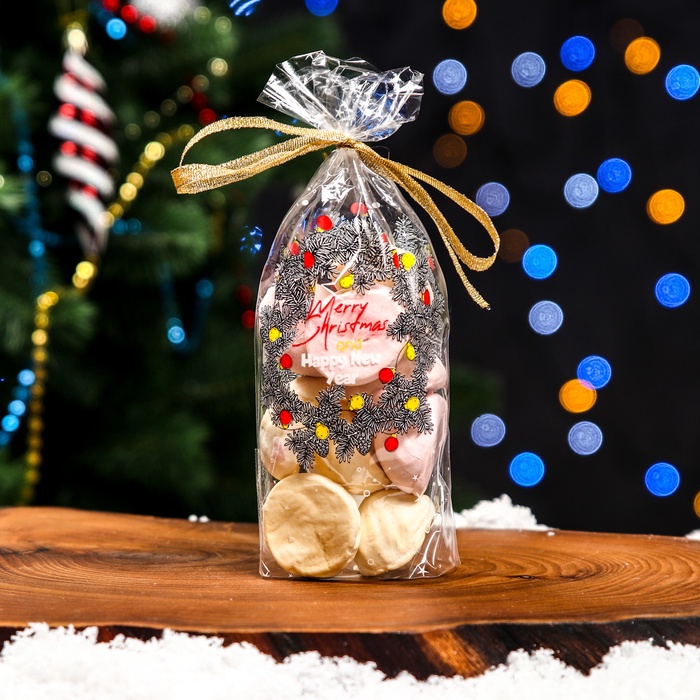 Создайте волшебство праздника! Новогодний пакет с декором «Венок» – это изысканное решение для упаковки подарков и хранения небольших предметов. Прочная и прозрачная структура делает его универсальным выбором для новогодних и рождественских торжеств.