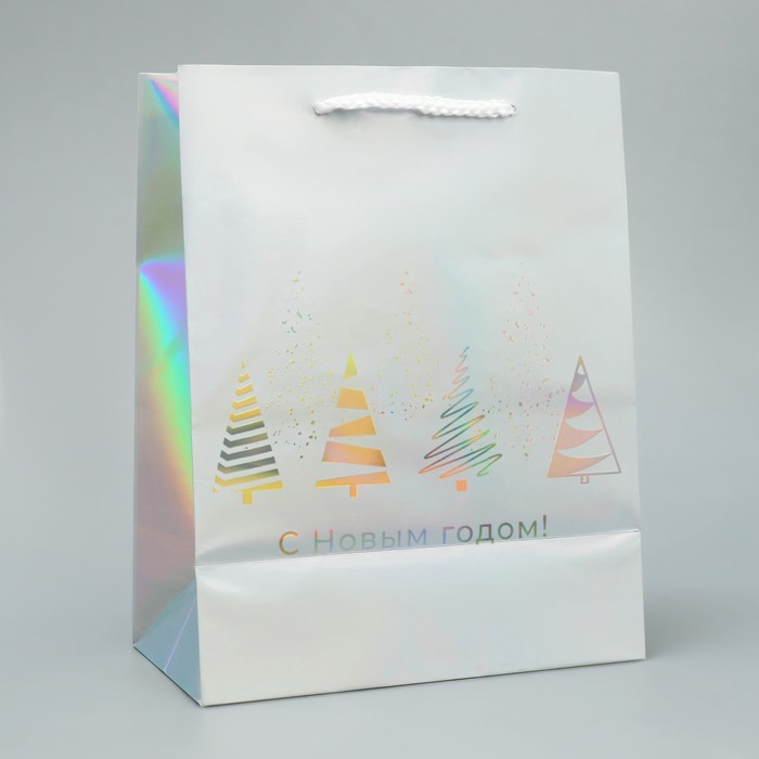 Пакет новогодний подарочный голографический «С Новым годом», 18×23×10 см